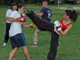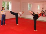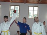 Fotek bylo i tentokrát opravdu hodně, svojí zrcadlovku Nikona jsem se snažil vždy někomu z momentálně necvičících udat a tak autorů fotografií je tentokráte více. Za všechny patří náš dík především Ivovi Moravcovi, Honzovi Radinovi a především Hoang Nguyen (jinak Petr :-) ), kterému se kromě mnoha dalších skvělých momentek povedlo zachytit při tréninku i velmi zdařilý a nijak předem neavizovaný kop z otočky s lehkým kontaktem přímo na ústa "soupeře". Standa to naštěstí přežil ve zdraví. Pavlínka ani nechtěla věřit, že se jí něco podobného mohlo povést, zvláště pak proti tak skvělému bojovníkovi, jakým Standa bezpochyby je!