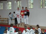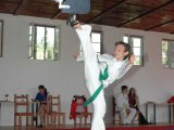 Pátek závody - a opět je tu konec dalšího týdne a s ním opět závody. Všichni závodníci jsou nervózní a ráno se snaží již před snídani rozhýbat námahou předchozích dní namožené svaly a šlachy a zapomenout na bolest různých naraženin. Závody tentokrát přinesly velmi vyrovnané zápolení ve všech kategoriích technických sestav, kdy finálové zápasy se i několikrát museli opakovat pro nerozhodný výsledek. To samé později nastalo i ve sportovním boji dospělých začátečníků, kdy v jedné z nalosovaných skupin se navzájem všichni porazili a tak se musely všechny zápasy opakovat se zkráceným časem kola na jednu minutu. Velmi pohledný a vyzrálý boj předvedl ve své kategorii Jaroslav Chytráček - Harry, který si dokázal poradit s výrazně většími a těžšími soupeři, byť s o málo nižšími technickými stupni. V kategorii A nad 78kg byli jen dva závodníci - David Sikáček a já, Marcel Heydušek. A Davidovi se po vyrovnaném boji povedlo jako prvnímu ze školy Silla mě zaslouženě porazit! David měl ke konci lepší fyzičku a také dokázal lépe bodovat technikami rukou. Ale tím mne ještě více namotivoval do dalšího tréninku a kdo ví, příští rok se mu to třeba zopakovat nepovede! :-) ! A nebo naopak mne předstihnou ještě další mladší, talentovaní a pilní žáci školy Silla jako jsou například Honza Král (letošní člen juniorské reprezentace), Ondřej Chábera, Jaroslav Chytráček, Roman Uhlík a nebo i někdo další. Pak mi nezbude než závodit nadále již jen v kategorii veteránů nad 40 let... Doufám ale, že alespoň jednou si zazávodím se silným seniorským týmem naší školy na podzimním mistrovství České Republiky. Že by snad konečně letos?