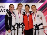 V technických sestavách seniorů jsme ale měli ještě jedno želízko v ohni, Petra Kotase, který podlehl až ve finále, takže opět krásné stříbro. Jen škoda silového přerážení, kde Petr závodil poprvé a bohužel se nekvalifikoval. U této disciplíny je potřeba veliká zkušenost a holt na poprvé to nevyšlo. Ale je to výzva a Petr už se těší na další závody, kde se hodlá s přerážecími deskami opět poprat. V seniorkách v neděli také poprvé startovala Iva Nasadošová ve sportovním boji. „Na ulici“ by Iva jednoznačně vyhrála, ale v ringu si bohužel soupeřka nabodovala více. Ale taková chuť do boje, kterou má naše Iva se jen tak nevidí. Tak teď už jen napilovat kopy a útočné kombinace. V áčkových juniorkách Veronika Černovská vybojovala stříbro, ale její častá zranění se bohužel projevila na fyzické kondici a doufáme, že na příštích závodech bude již Verča fit a popere se jako „za mlada“ ☺.